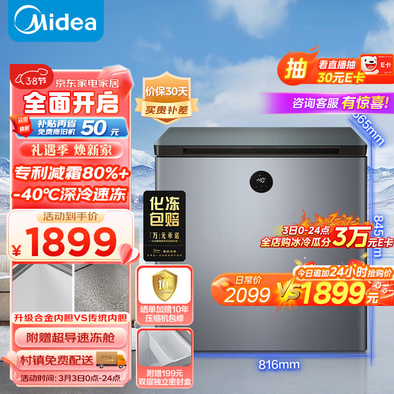 美的(Midea)201升-40℃超低温深冷速冻锁鲜冰柜 电子控温减霜节能家用商用海鲜冷柜 母乳小冰箱 BD/BC-201KEMS价格:1999.00元!