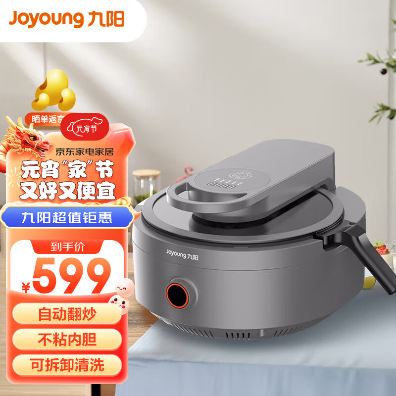 九阳(Joyoung)炒菜机机器人家用多用途锅电炒锅自动翻炒无油烟精准控温智能烹饪曲线五大烹饪功能不粘内胆CJ-A9价格:589.90元!