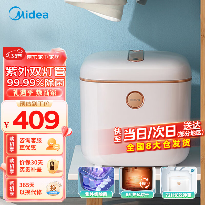 美的(Midea)烘干机小型 内衣内裤99.99%除菌机 小件衣物袜子婴儿玩具奶瓶 10L衣物护理盒家用干衣机 MH-DXW01价格:409.00元!