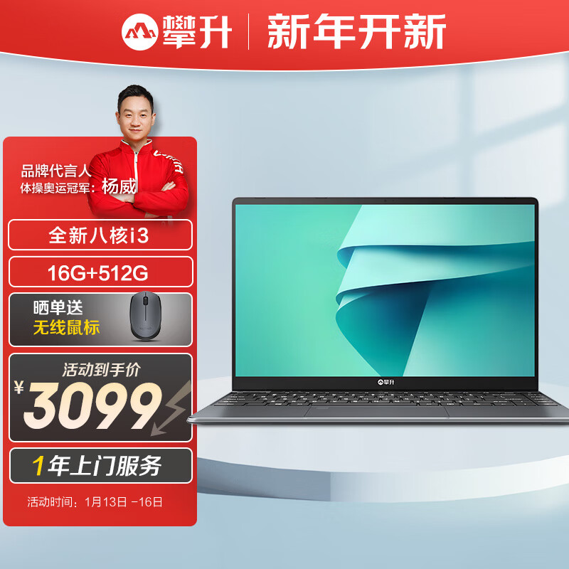 攀升【杨威推荐】国行明星款P3先锋版英特尔四核14英寸低蓝光高性能笔记本电脑游戏网课设计办公轻薄本价格:3099.00元!