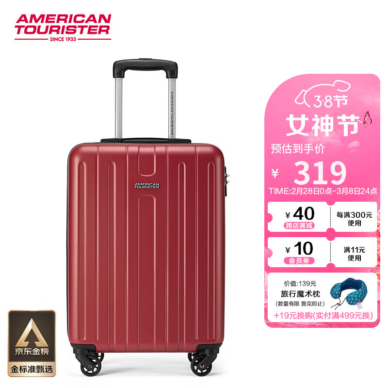 美旅箱包时尚条纹行李箱旅游登机箱旅行箱大学生密码箱TC3红色20英寸价格:429.00元!