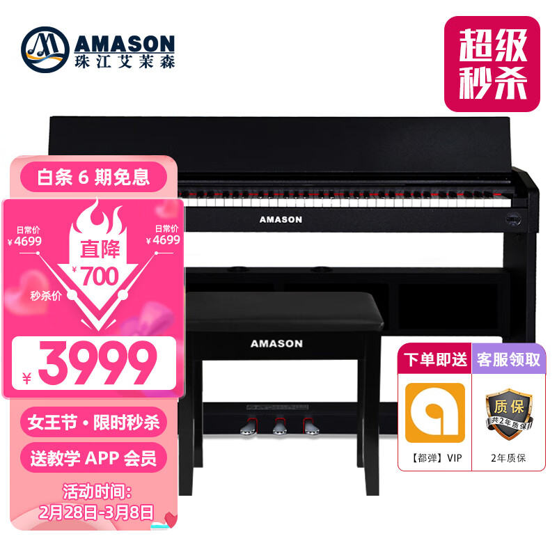 艾茉森(Amason)珠江钢琴 考级电钢琴88键重锤数码电子钢琴专业手感F10 黑色价格:4699.00元!