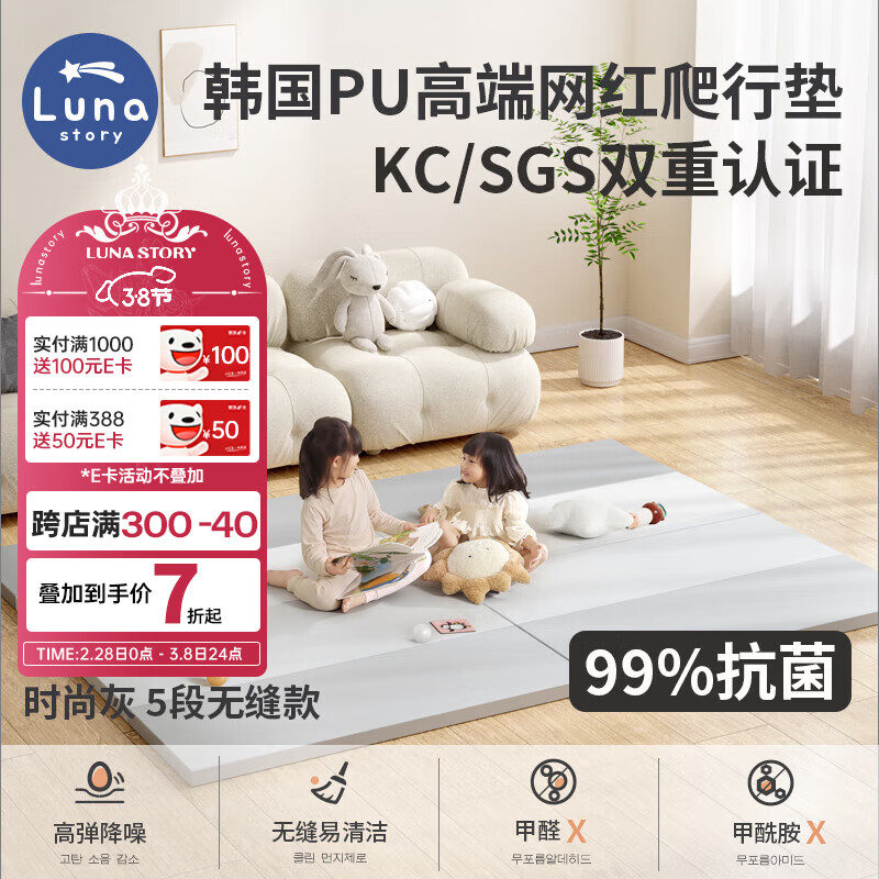LUNASTORY韩国网红婴儿爬爬垫 宝宝爬行垫高端PU无缝儿童消音防摔防潮地垫价格:1049.00元!