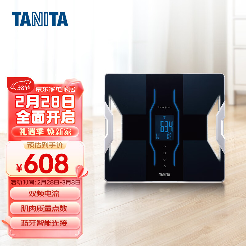 百利达(TANITA)RD-953S 专业智能电子秤体脂秤 减肥专用精准 健康检测家用 双频四电极 日本品牌 黑色价格:999.00元!