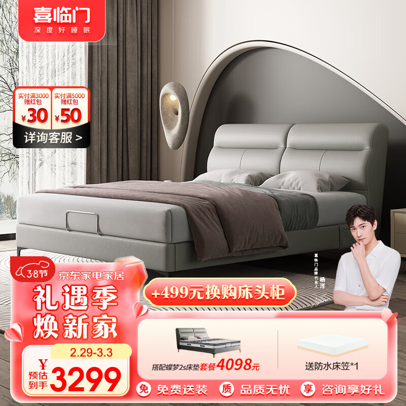 喜临门现代简约头层牛皮软床 双靠包双人排骨架主卧婚床 夜曲S 1.8x2米价格:3999.00元!