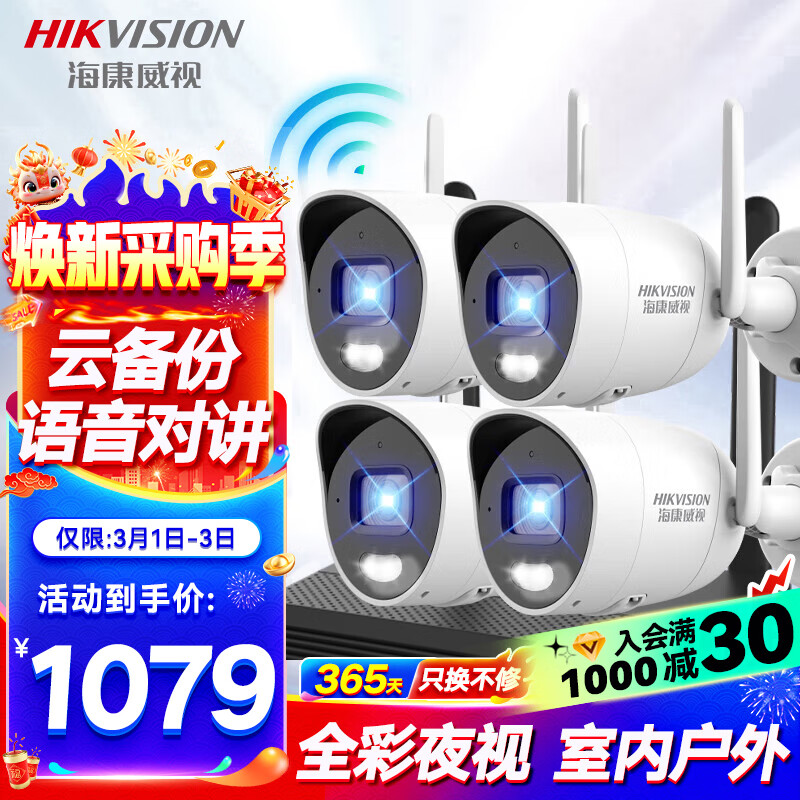 HIKVISION海康威视家用无线摄像头监控4路400W超高清手机远程监控WIFI室内室外可对话户外全彩夜视K24H-LWT价格:1079.00元!