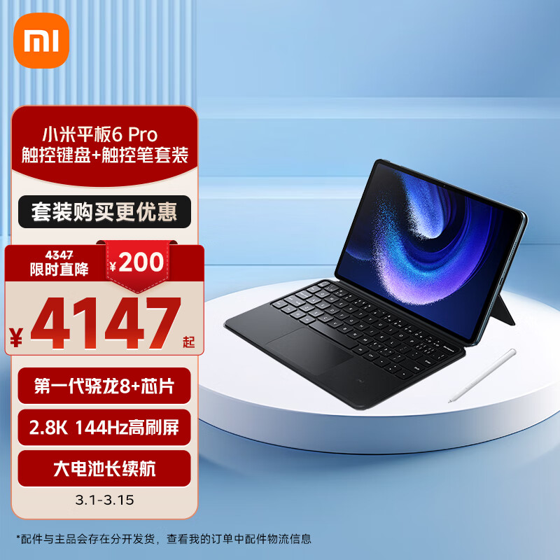 小米平板6Pro 11英寸 骁龙8+强芯 144Hz2.8K 12+512GB移动办公娱乐平板电脑远山蓝【触控笔+键盘套装】价格:4147.00元!