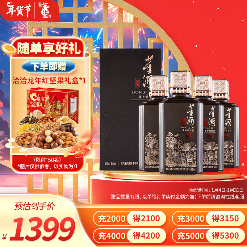 董酒 窖藏系列 窖藏C9 董酱兼香型白酒 50度 500ml*4整箱 过年送礼价格:1499.00元!