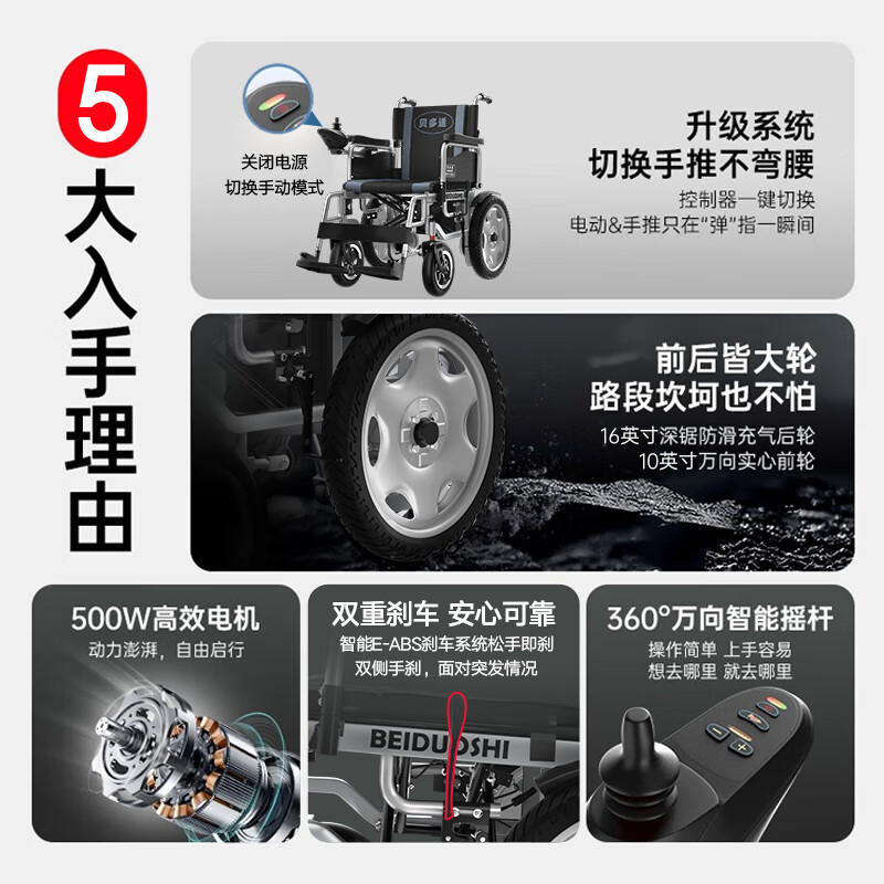 贝多适电动轮椅老人全自动越野轻便可折叠旅行便携式小巧家用双人老年代步电动车可上楼飞机可后全躺带坐便器价格:3680.00元!