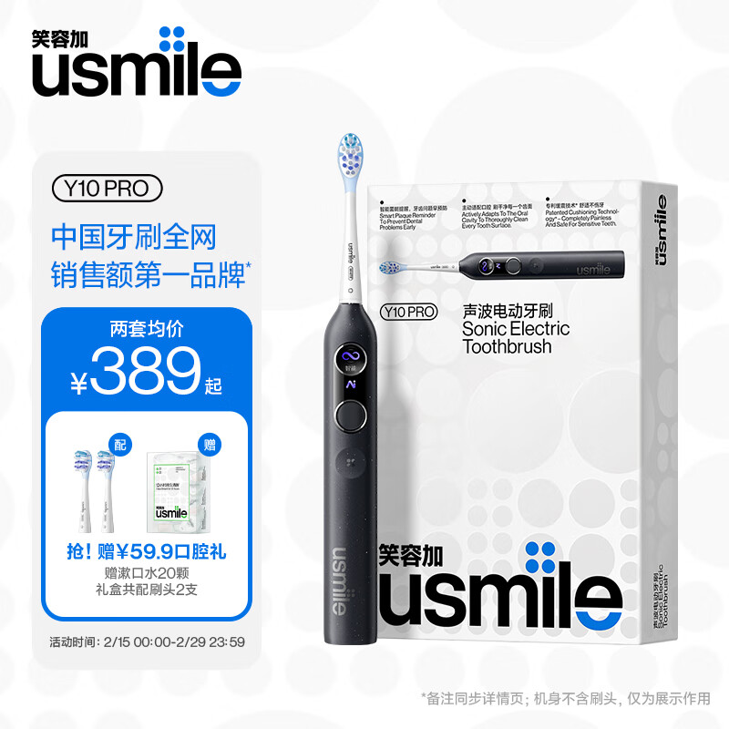 usmile笑容加电动牙刷 成人声波震动电动牙刷 情侣款送男友/送女友 Y10PRO曜黑 生日礼物价格:399.00元!