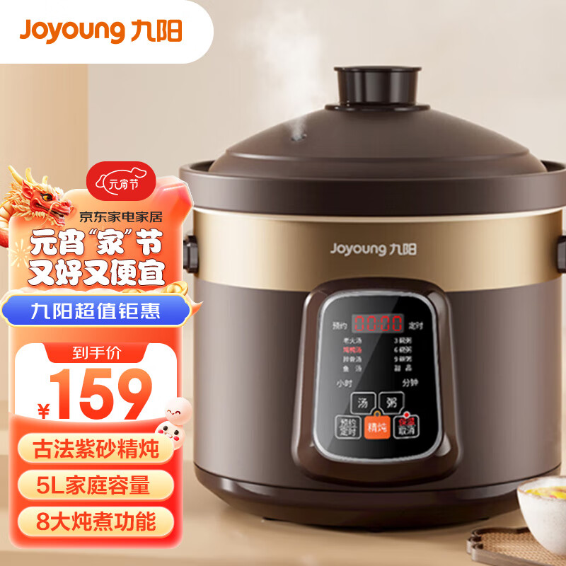 九阳(Joyoung)电炖锅电炖盅5L大容量紫砂 预约电砂锅大功率 陶瓷煮粥煲汤锅DGD50-05AK价格:159.00元!