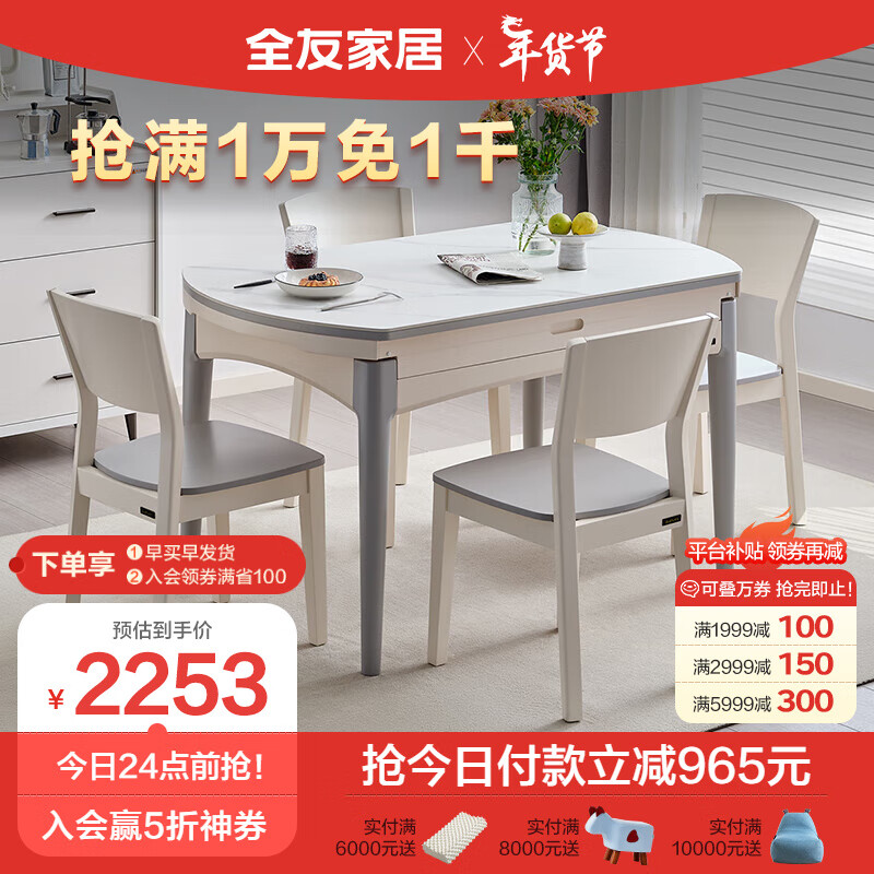 全友家居 餐桌椅 现代简约实木框架餐桌椅可伸缩折叠岩板餐桌DW1028K价格:3218.57元!