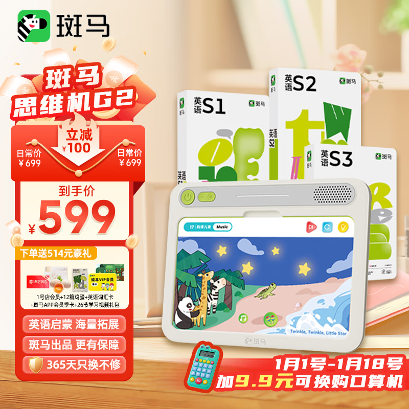 斑马思维机G2 英语全阶段 猿辅导学习机早教机 儿童玩具3-8岁新年礼物价格:599.00元!