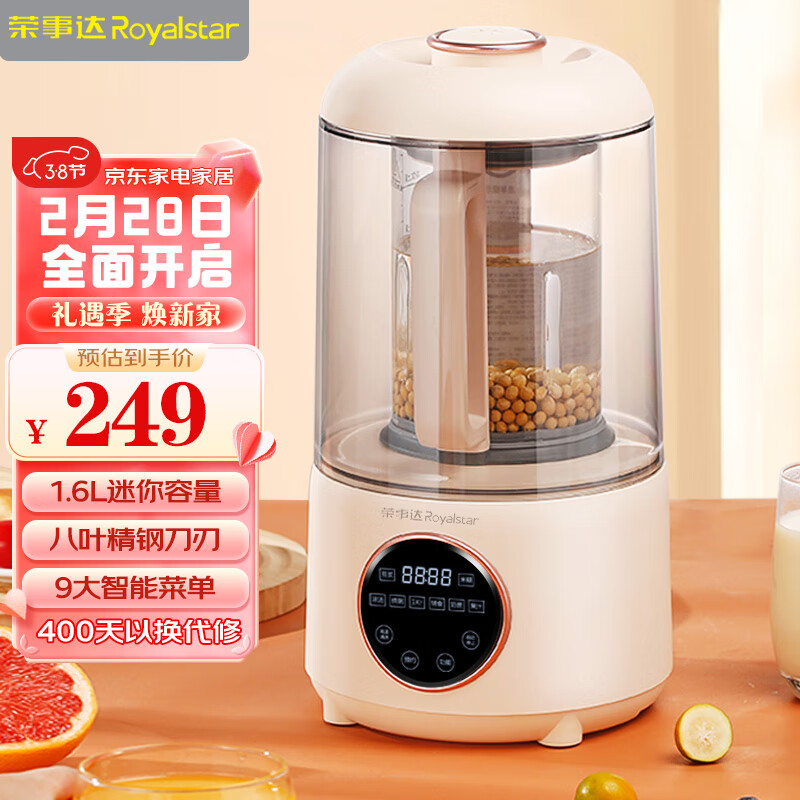 荣事达(Royalstar)静柔音破壁机家用豆浆机加热全自动榨汁机搅拌机降噪果汁机料理机米糊辅食机RZ-535Q价格:249.00元!