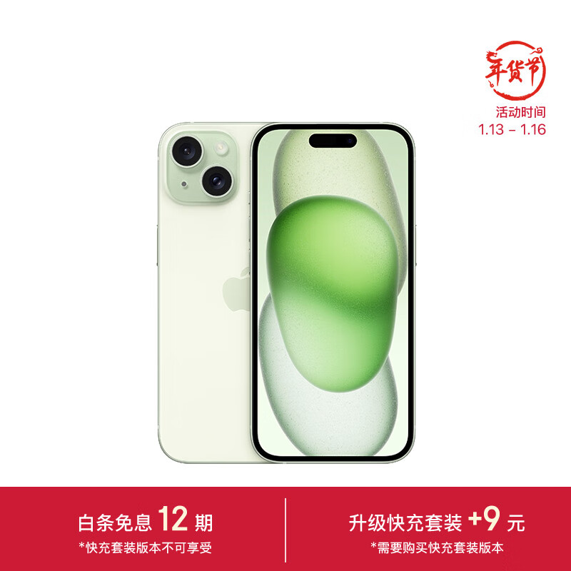 Apple/苹果 iPhone 15 (A3092) 256GB 绿色 支持移动联通电信5G 双卡双待手机价格:6199.00元!