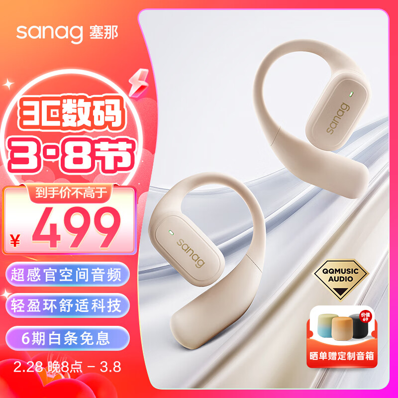 SANAG塞那【柏林之声丨超感音质】Z77蓝牙耳机挂耳式骨传导概念不入耳开放式运动耳机通话降噪高端礼物 暖阳白丨空间音效丨舒适不漏音价格:599.00元!