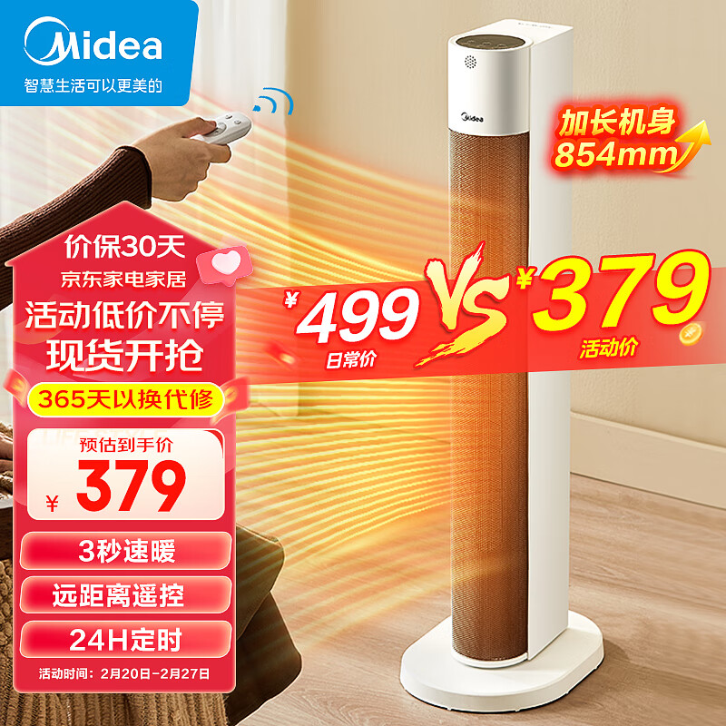 美的(Midea)【超级单品】暖风机/取暖器家用/加热风机/电暖器/电暖气/电热风扇大面积立式轻音节能 HFU22CR价格:409.00元!