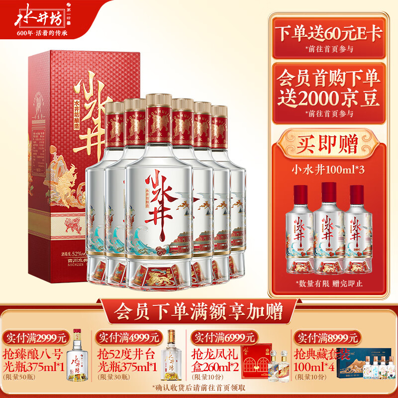 水井坊 小水井 52度 500ml*6 整箱装 浓香型白酒价格:1194.00元!