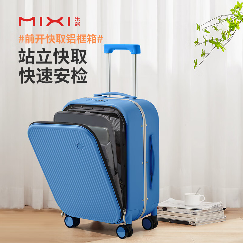 米熙拉杆箱子行李箱包前开盖铝框箱女高颜值登机箱男20英寸克莱茵蓝70价格:649.00元!