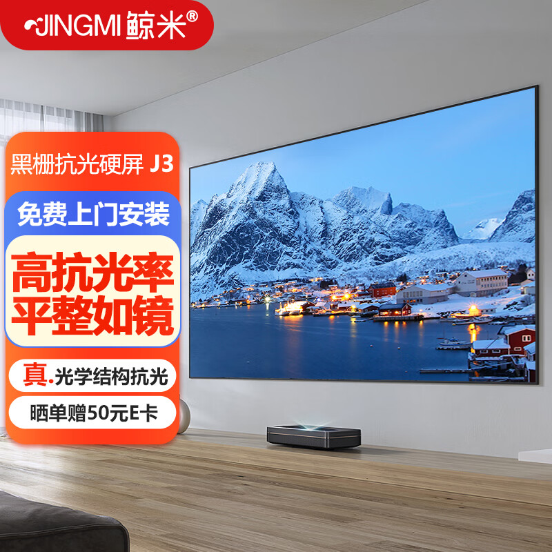 鲸米(JINGMI)100英寸16:9激光电视黑栅光学抗光硬屏J3高清4K超短焦投影仪家用影院办公抗光投影屏幕价格:3699.00元!