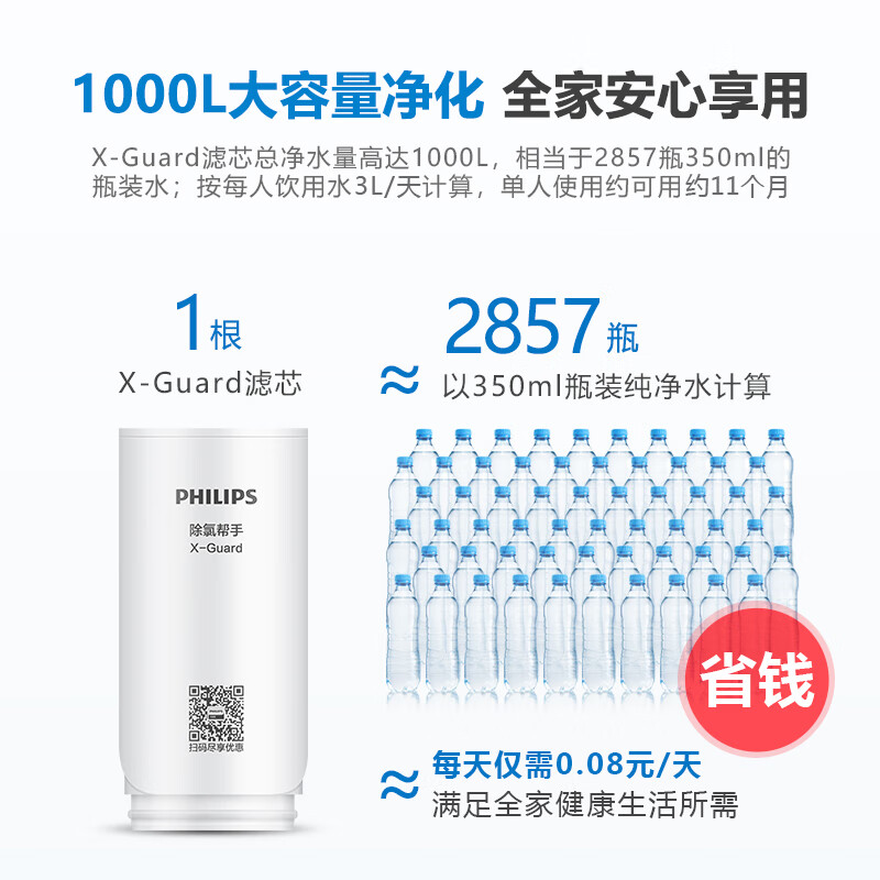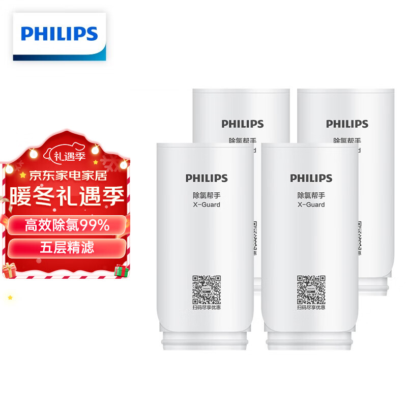 飞利浦(PHILIPS)AWP302 全新升级五重精滤高效除氯滤芯四支装(适配净水龙头AWP3600)价格:99.00元!