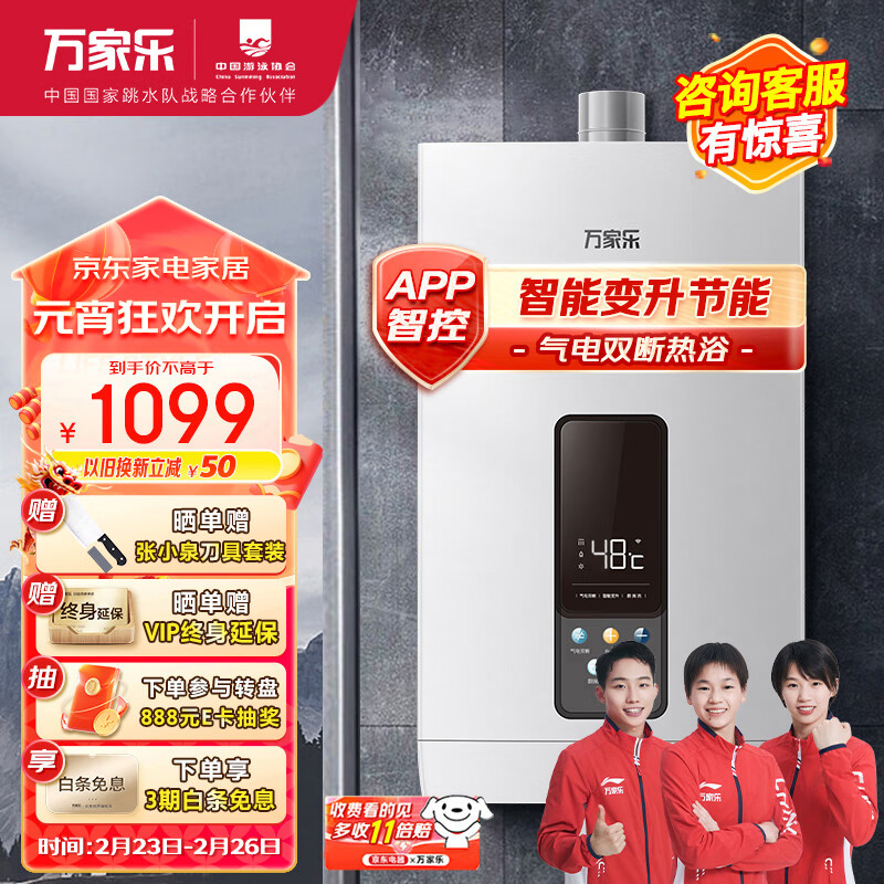 万家乐16升燃气热水器天然气节能省气智能变升恒温气电双断多重防冻低水压启动APP控制JSQ30-16DP3(F)价格:1098.00元!