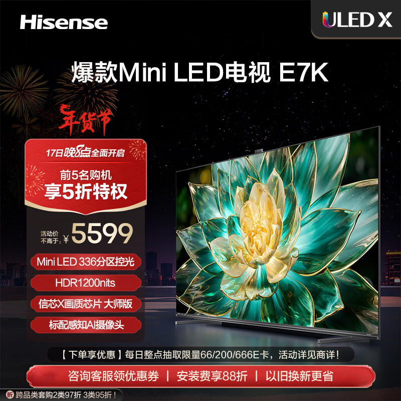 海信电视65E7K 65英寸 ULED X Mini LED 336分区 AI摄像头超感知 智慧屏 液晶智能平板电视机 以旧换新价格:5599.00元!