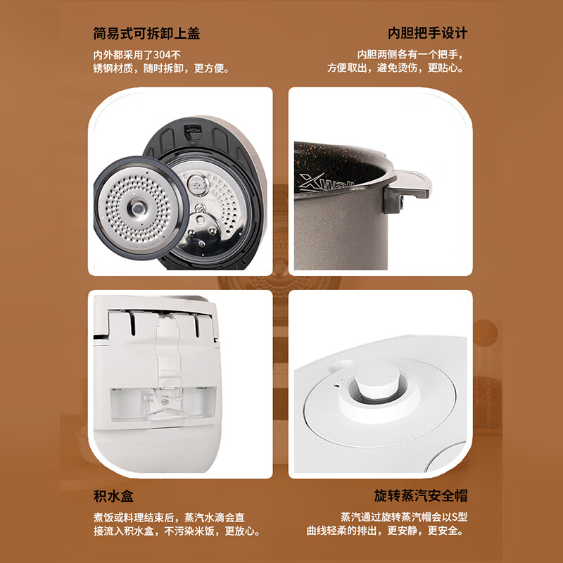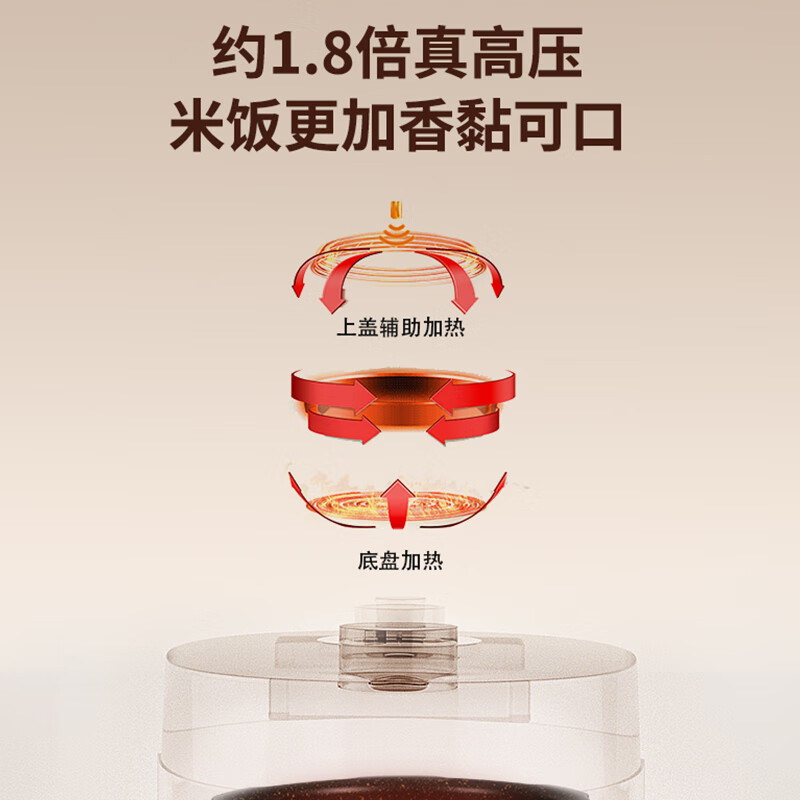 2、一直想买个带高压功能的电饭锅,收到货后立马煮了个红豆汤试试,1小时就完成了。语音功能非常贴心,排气前也会提醒