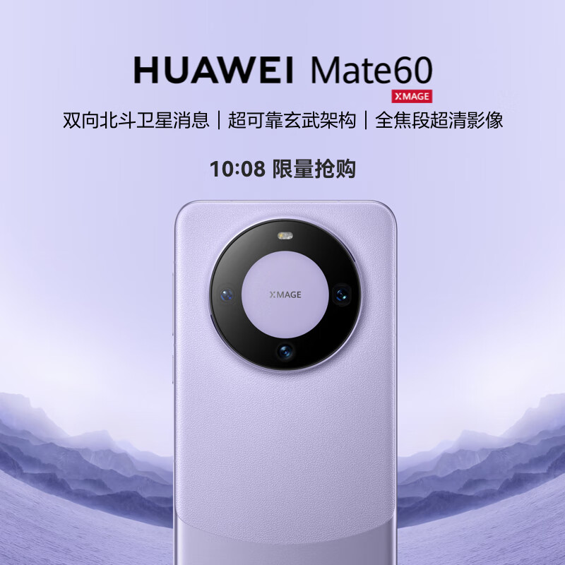 华为(HUAWEI)旗舰手机Mate 60 12GB+512GB 南糯紫价格:5999.00元!