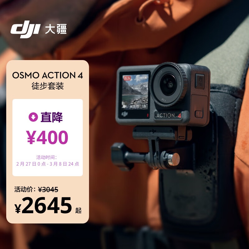 大疆 DJI Osmo Action 4 徒步套装 灵眸运动相机 摩托车山地公路骑行潜水防抖户外vlog相机 手持摄像机价格:2645.00元!