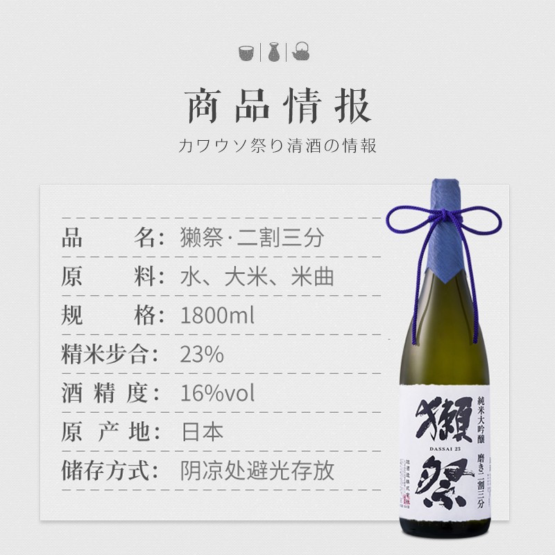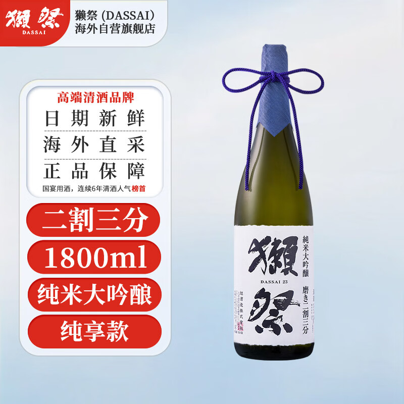 獭祭(Dassai)23二割三分 日本清酒 1.8L 原装进口洋酒 纯米大吟酿价格:1799.00元!