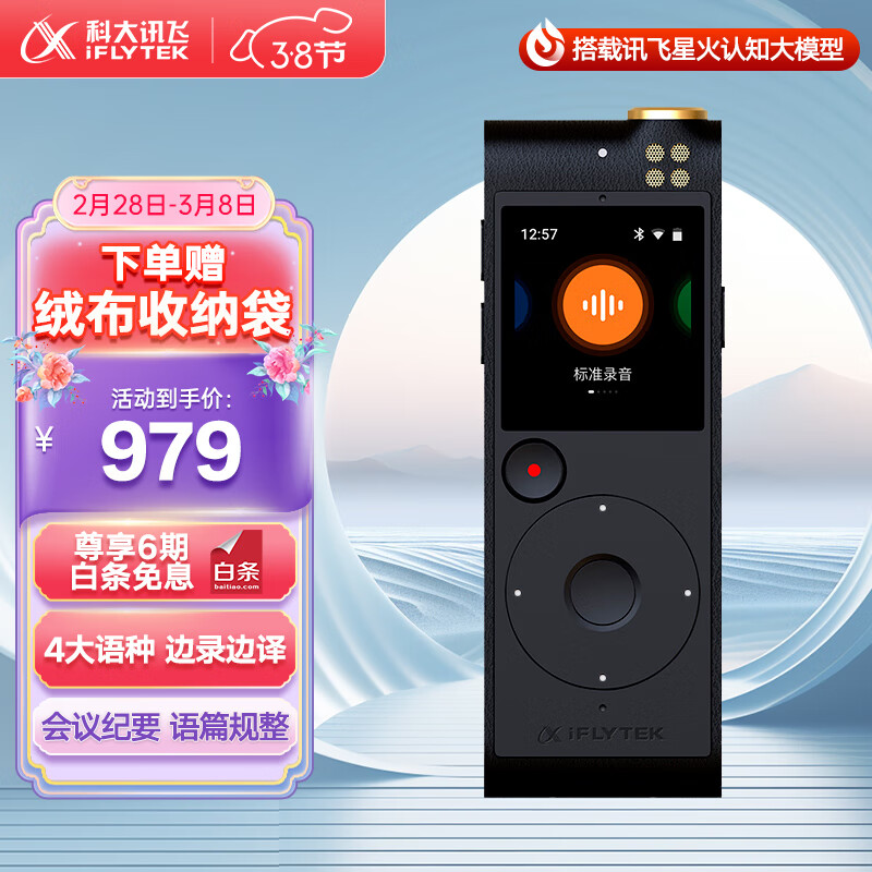 科大讯飞智能录音笔SR201 免费转写 中英文实时互转 触摸屏融合按键操作 专业降噪 32G+云储存 星空灰价格:979.00元!