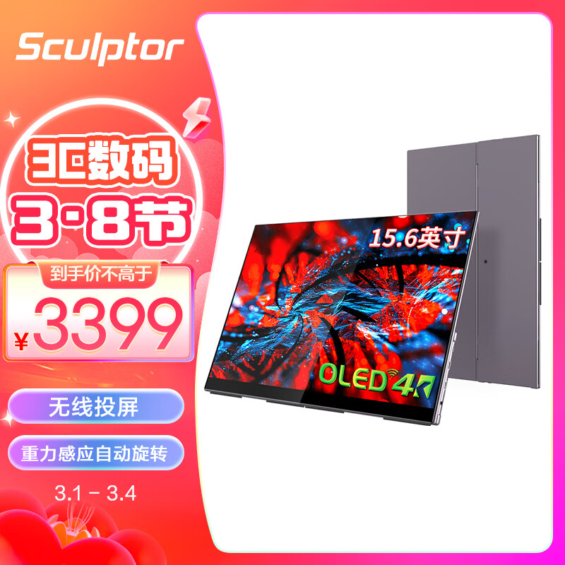 雕塑家15.6英寸4K OLED 便携式显示器专业级手机电脑笔记本外接拓展屏幕无线投屏拓展ps4/5移动副屏价格:3499.00元!