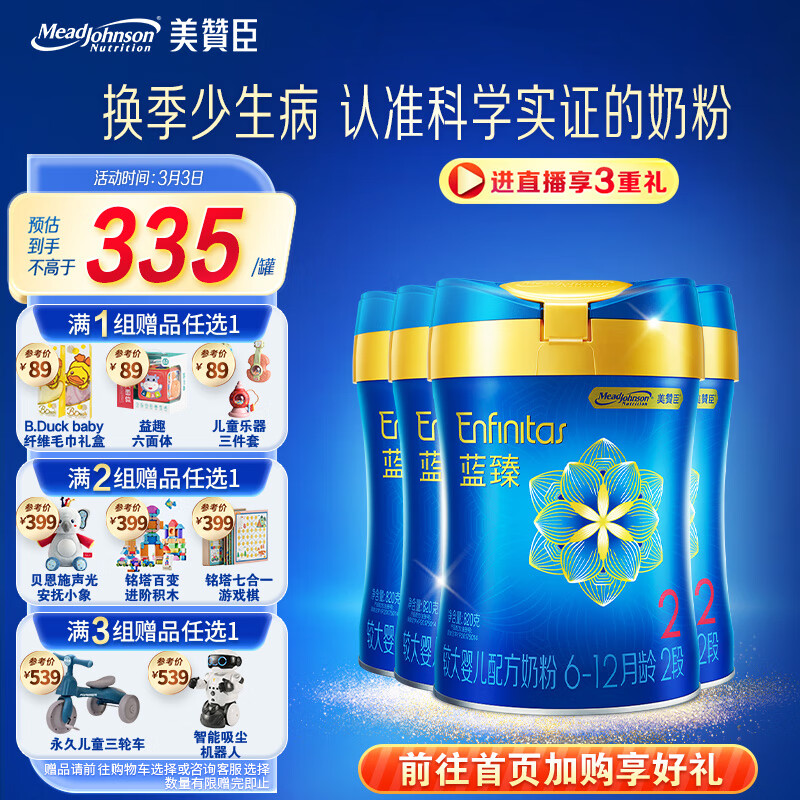 美赞臣蓝臻 2段较大婴儿配方奶粉 (6-12月)820g*4箱装【25年1月过期】价格:1522.73元!