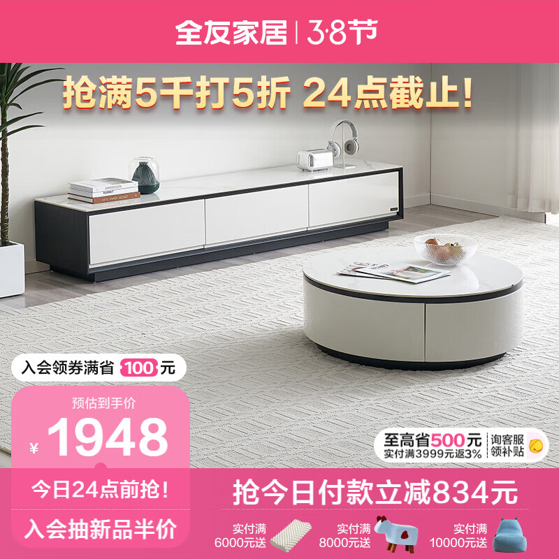 全友家居 岩板茶几电视柜组合现代简约客厅家用圆形茶几边几DW1055A价格:2782.86元!