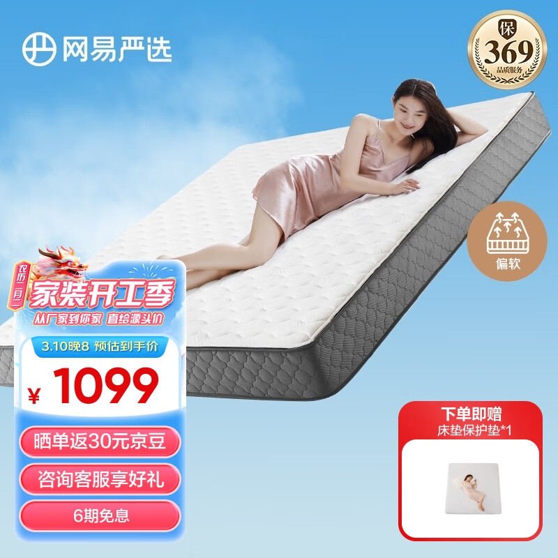 网易严选 弹簧床垫1.8*2米 乳胶床垫 3D椰棕席梦思床垫 乳胶款价格:1199.00元!