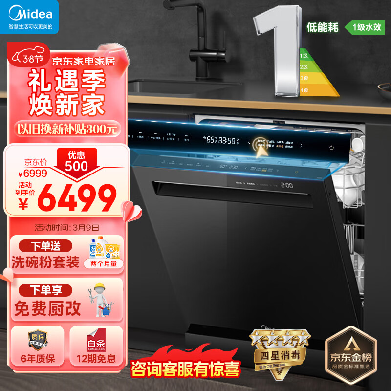 美的(Midea)15套嵌入式洗碗机GX2000【一键独立消毒 】105℃热风烘干 五臂飓风洗 双驱变频 新一级水效价格:12999.00元!