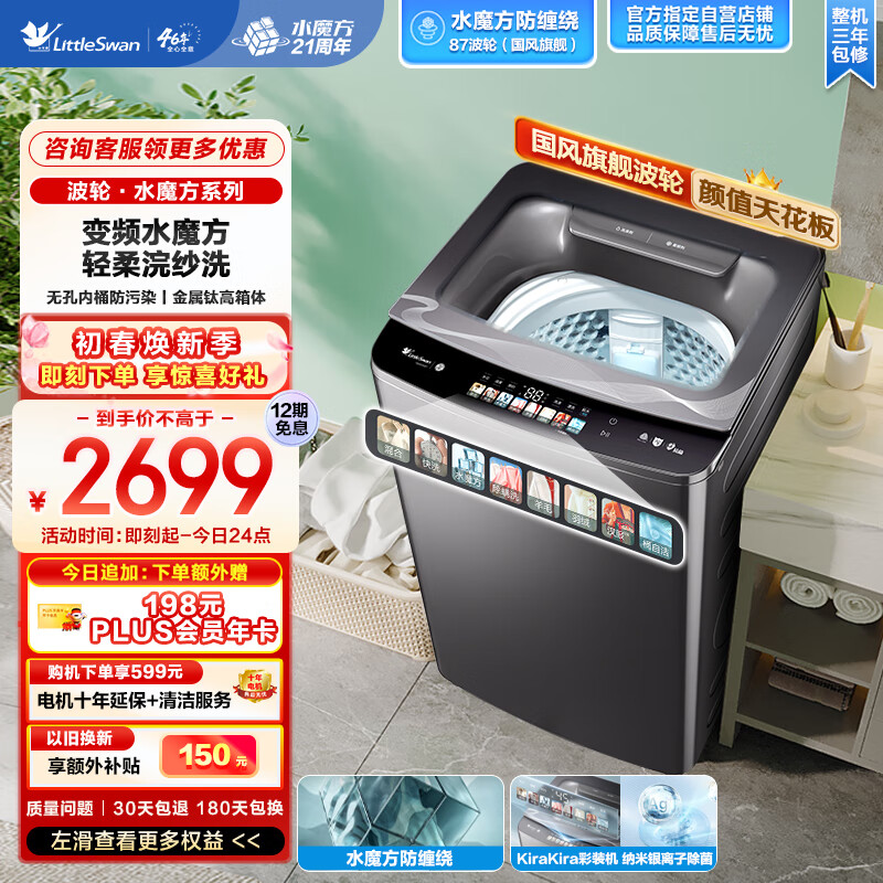 小天鹅(LittleSwan)波轮洗衣机全自动 水魔方系列 浣纱洗护防缠绕 国风外观 直驱变频动力 10公斤 TB100S87价格:2699.00元!