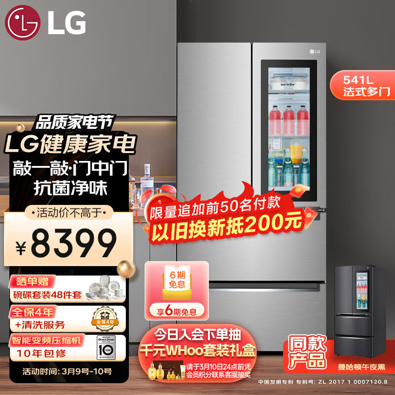 LG敲一敲门中门 541升大容量变频法式多门 家用风冷无霜 多维风幕系统 节能净味冰箱F532MPZ71B银价格:8399.00元!