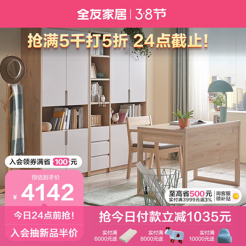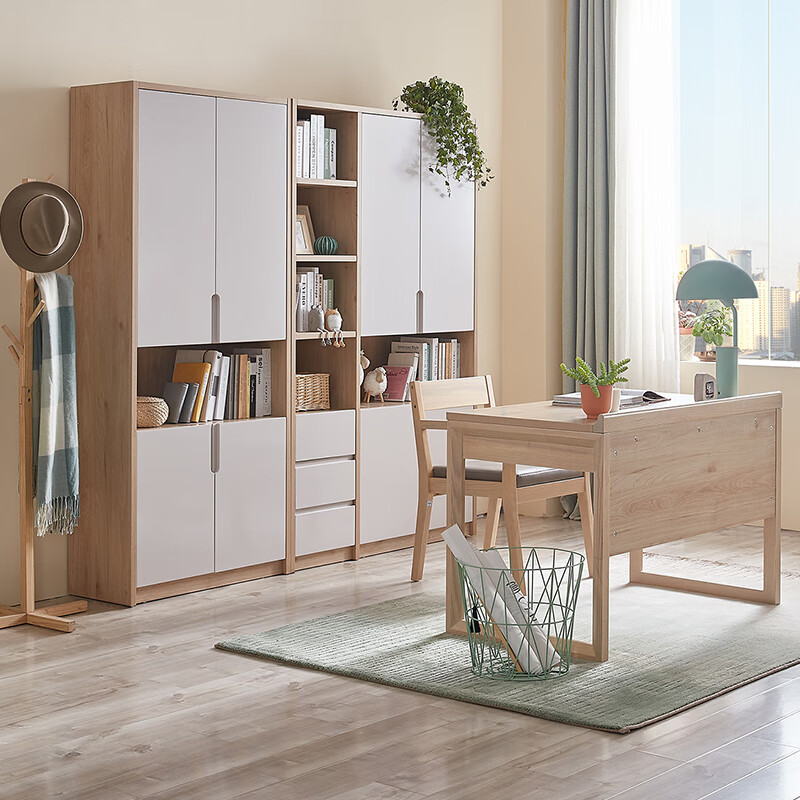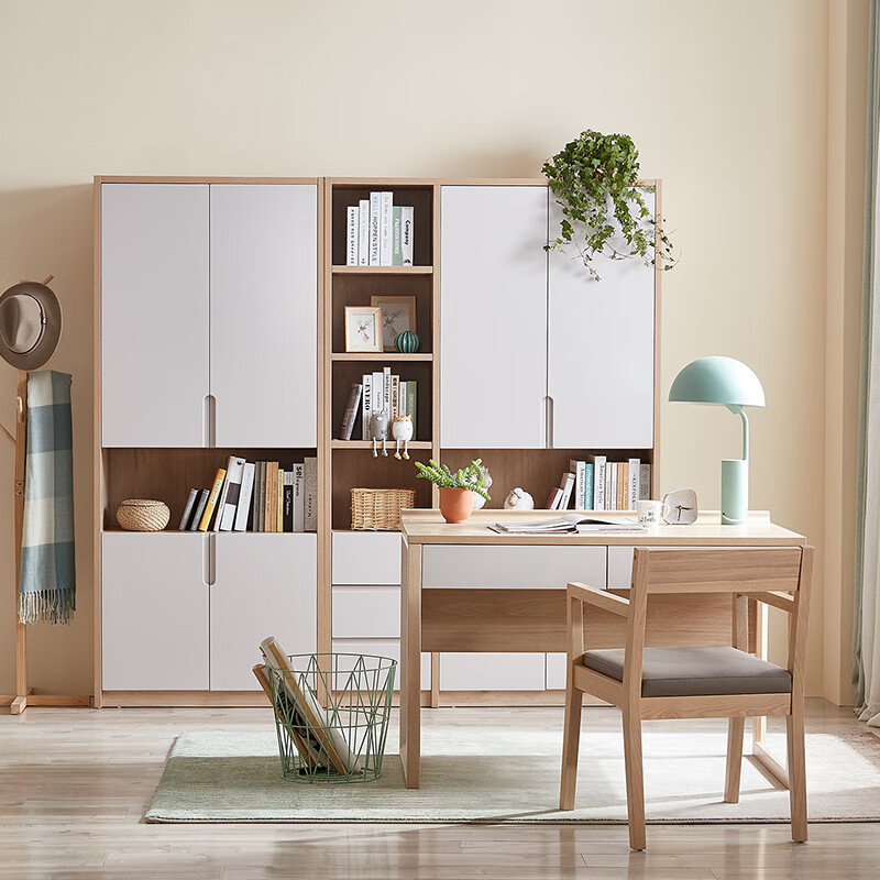 全友家居 书柜书桌架 北欧双色混搭实木框架书桌椅书柜组合125707价格:5177.50元!