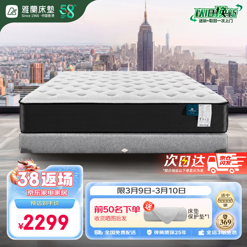 雅兰50周年纪念款 软硬适中独袋弹簧乳胶床垫 蘭朋友舒适2.0 1.8*2米价格:2699.00元!