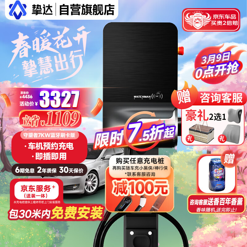 挚达7kw赛博充电桩新能源电动汽车充电器枪适配特斯拉比亚迪极氪001奔驰问界m7送装一体30米内免费安装价格:4436.00元!
