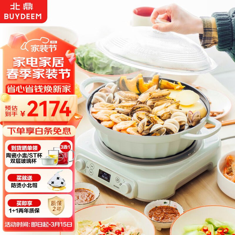 北鼎(Buydeem)家用大功率 多功能电磁炉+ 28cm多功能火锅【浅杉绿】价格:2174.00元!