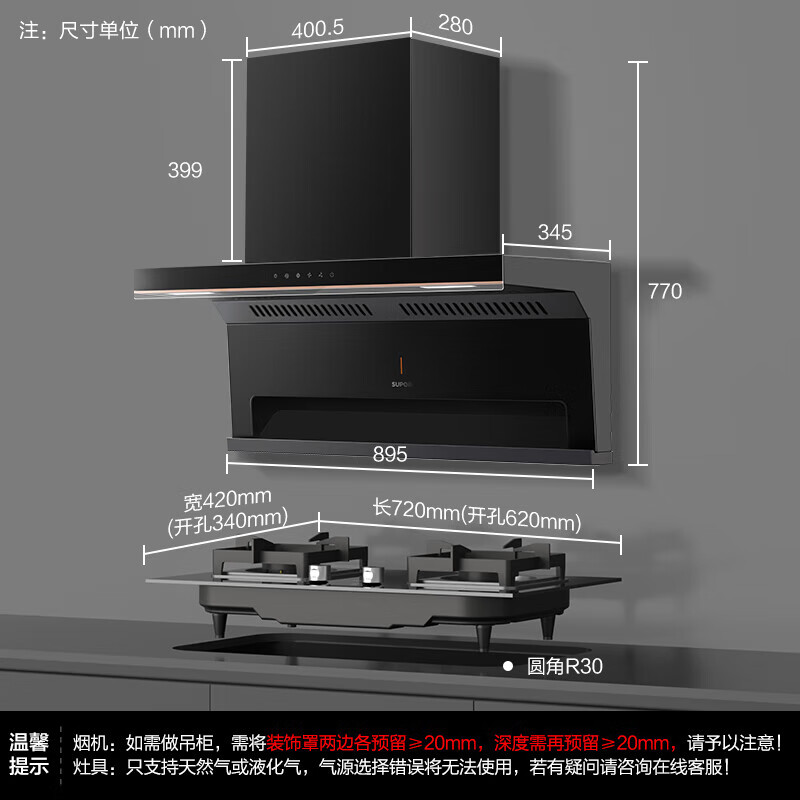 烟机安装尺寸:900±50mm