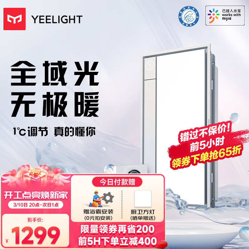 Yeelight智能浴霸S3双直流无极调温米家app控制集成吊顶浴霸风暖价格:1999.00元!