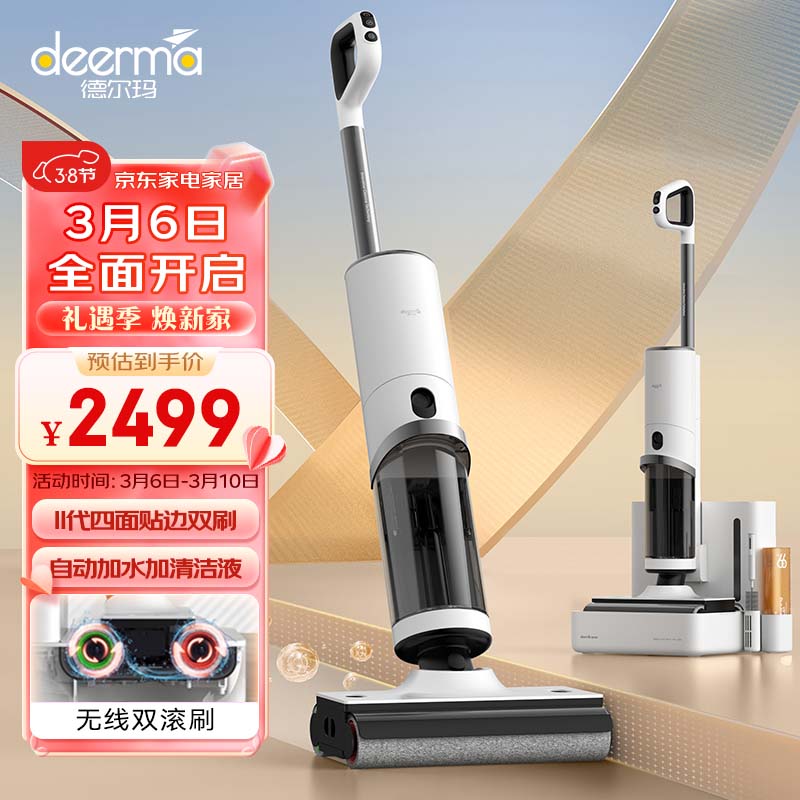 德尔玛(Deerma)P50PRO 无线智能自动双舱双轴洗地机 家用吸拖一体自动加水双滚刷电解水除菌 基站热风烘干价格:2499.00元!