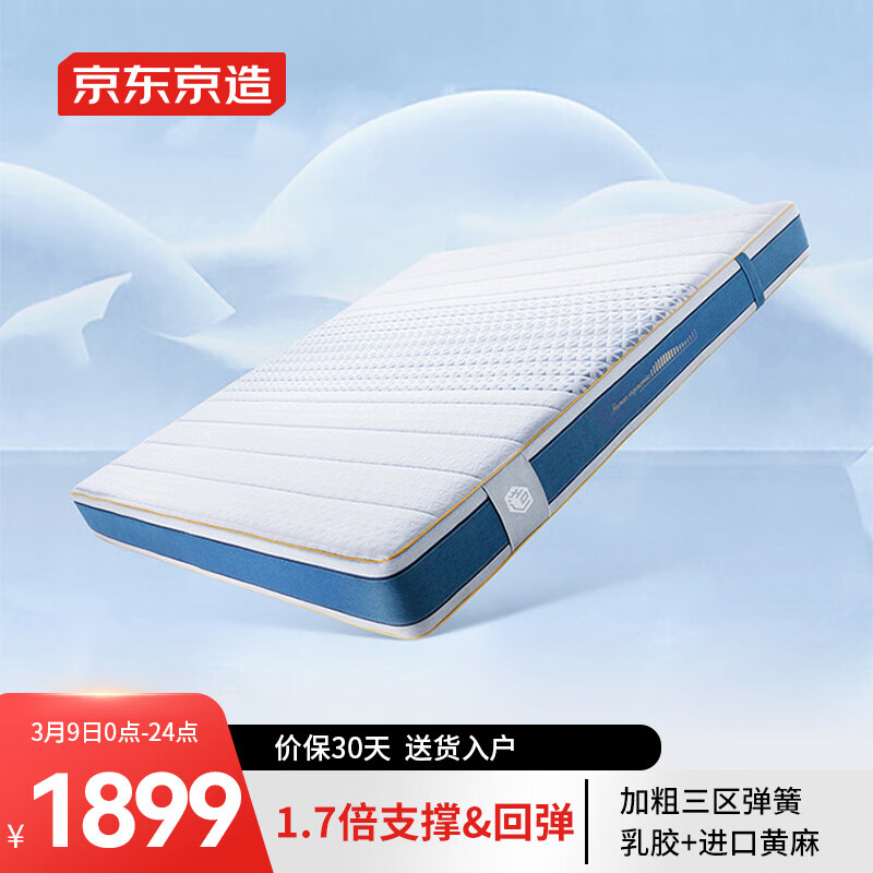 京东京造弹簧床垫 乳胶+黄麻|3D空气纤维|撑腰舒脊 席梦思床垫1.8×2米MH01价格:2099.00元!