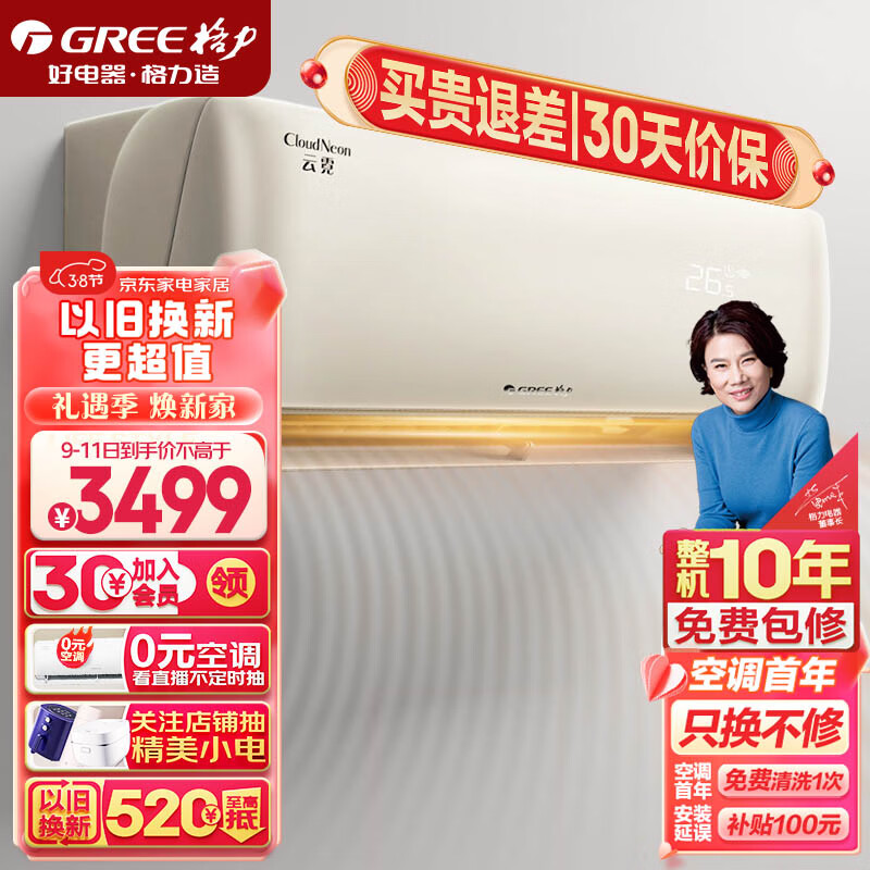格力(GREE)空调 京东小家智能生态 大1匹 云霓 1级能效变频 壁挂式卧室挂机KFR-26GW/NhAn1BAj珊瑚玉色价格:3499.00元!