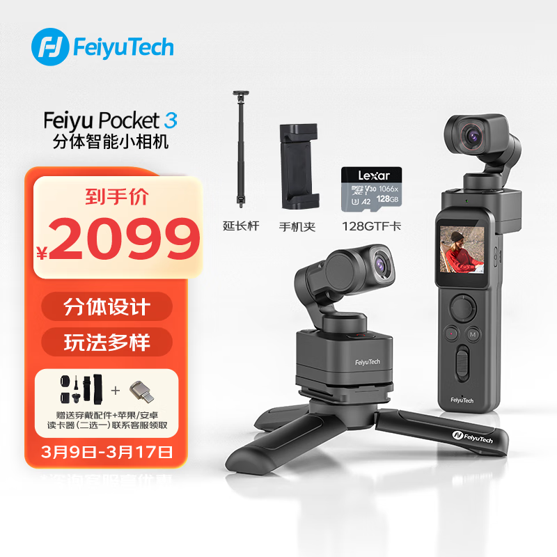 FeiyuTech飞宇Feiyu pocket3口袋云台相机骑行户外运动相机手持可分离摄像头高清增稳vlog摄影机全家福套装价格:2099.00元!