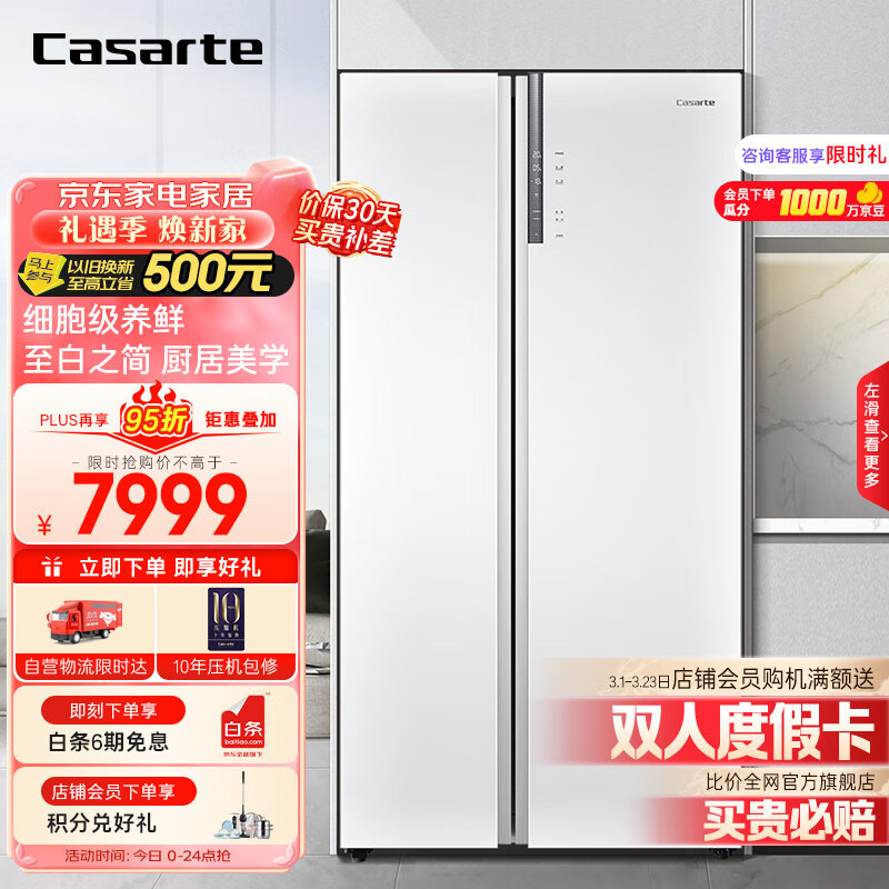 卡萨帝(Casarte)643升纯白系列大容量对开门双开门家用嵌入式电冰箱一级变频玻璃面板白色BCD-643WLCSS79W1U1价格:7999.00元!